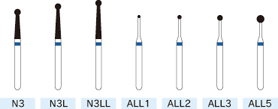 N 7,N2, N3, N3L, N3LL, ALL3 & ALL5は歯内療法において痛んでいる、または腫大した内部を削るために使用されています。 |